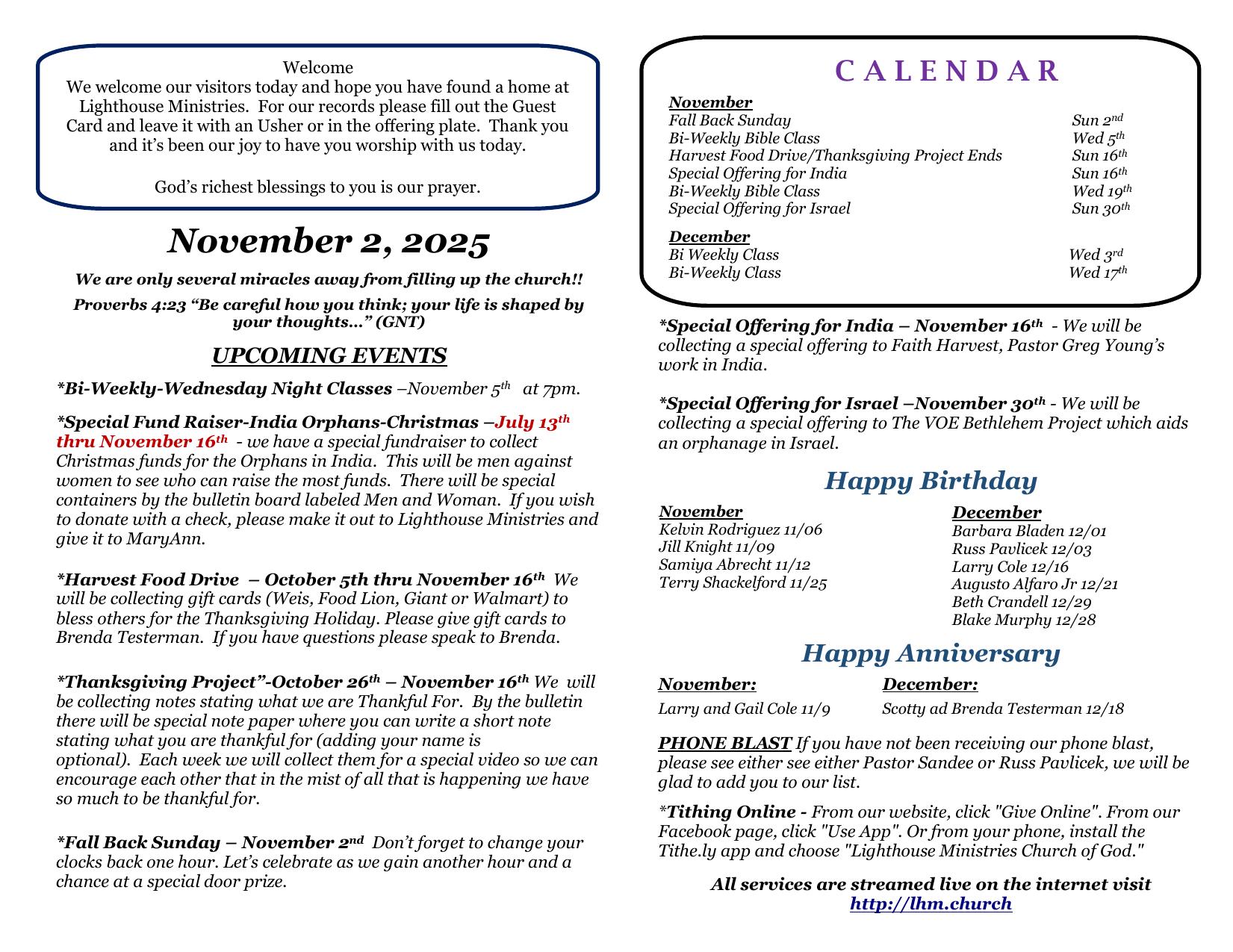 Sunday: 10:30 AM ET CHURCH (& ONLINE) -- BIBLE STUDY Wednesdays (see events)